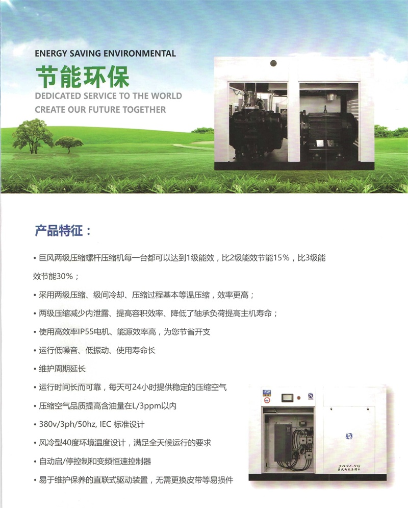 巨風(fēng)牌雙(兩)級壓縮節(jié)能高效螺桿式空壓機(jī)
