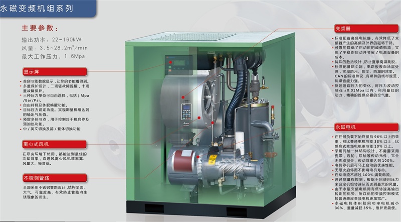 配備第四代高效率B齒型轉(zhuǎn)子,噪音低,振動(dòng)小,壽命長(zhǎng),同軸一體結(jié)構(gòu)設(shè)計(jì),完全無傳動(dòng)損失,啟動(dòng)電流不超過100%滿載電流;
