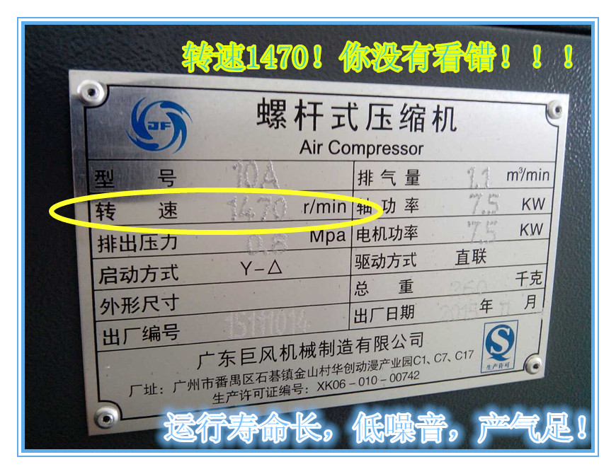 該款機(jī)器采用直聯(lián)驅(qū)動設(shè)計(jì),使用聯(lián)軸膠替代皮帶,搭載20A大機(jī)頭和IP54電機(jī),1:1轉(zhuǎn)動,最高轉(zhuǎn)速才1470(絕對不相信吧),機(jī)器工作時(shí),噪音60分貝,運(yùn)行平穩(wěn),產(chǎn)氣量大,性價(jià)比高,是替代傳統(tǒng)活塞式空壓機(jī)用戶的最佳選擇!